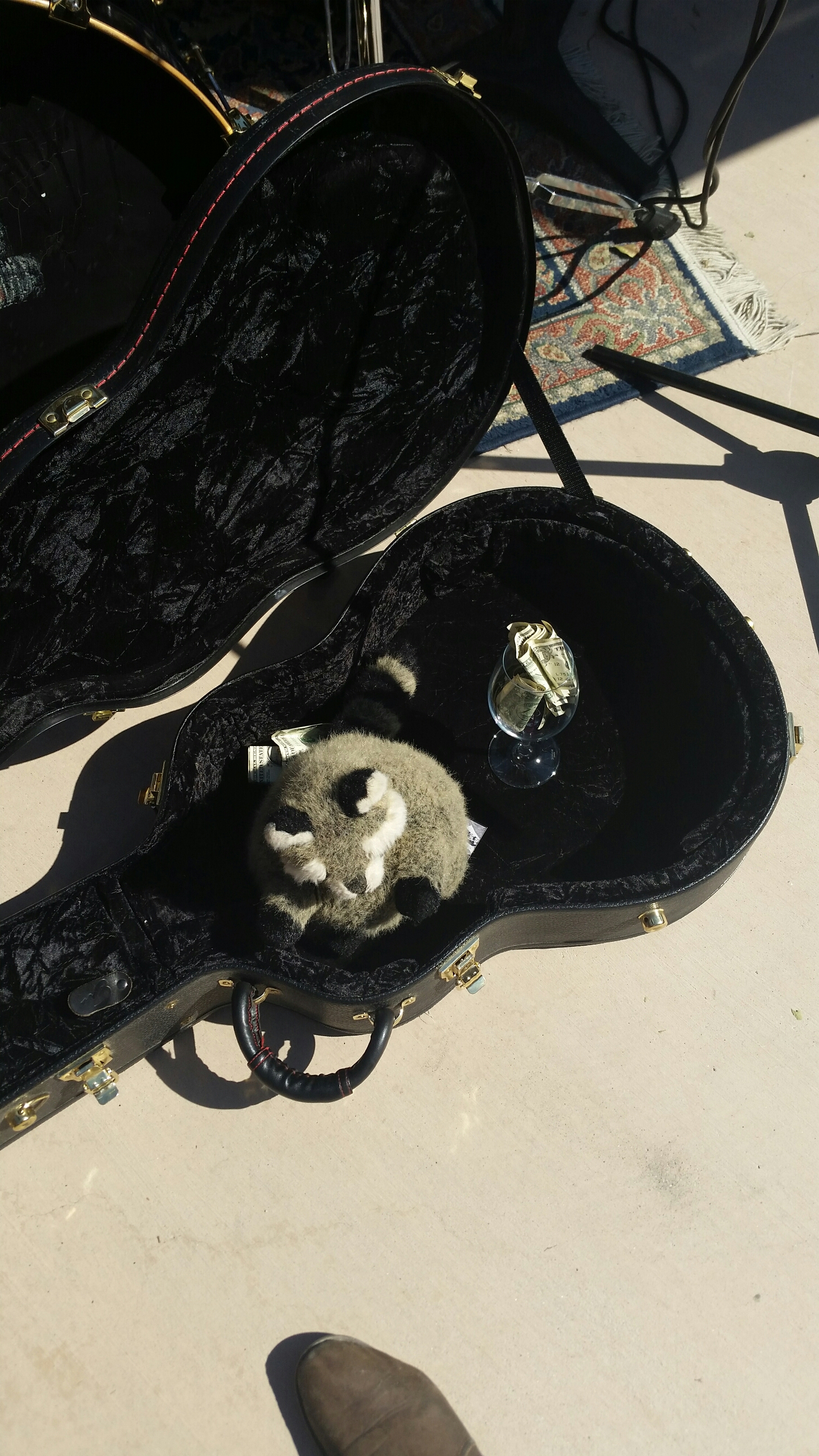 Then we went outside and there was a live band. I got in the guitar case and pretended I was part of the band. My paws are too small for a real guitar. I’ve tried with mom’s and get bass guitar too but no luck.