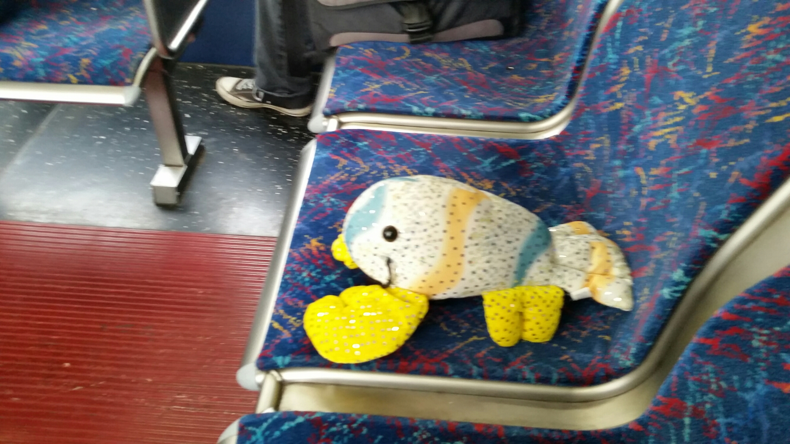He headed towards the back of the bus, where Lobsty sat waiting, you couldn’t miss his shiny scales.