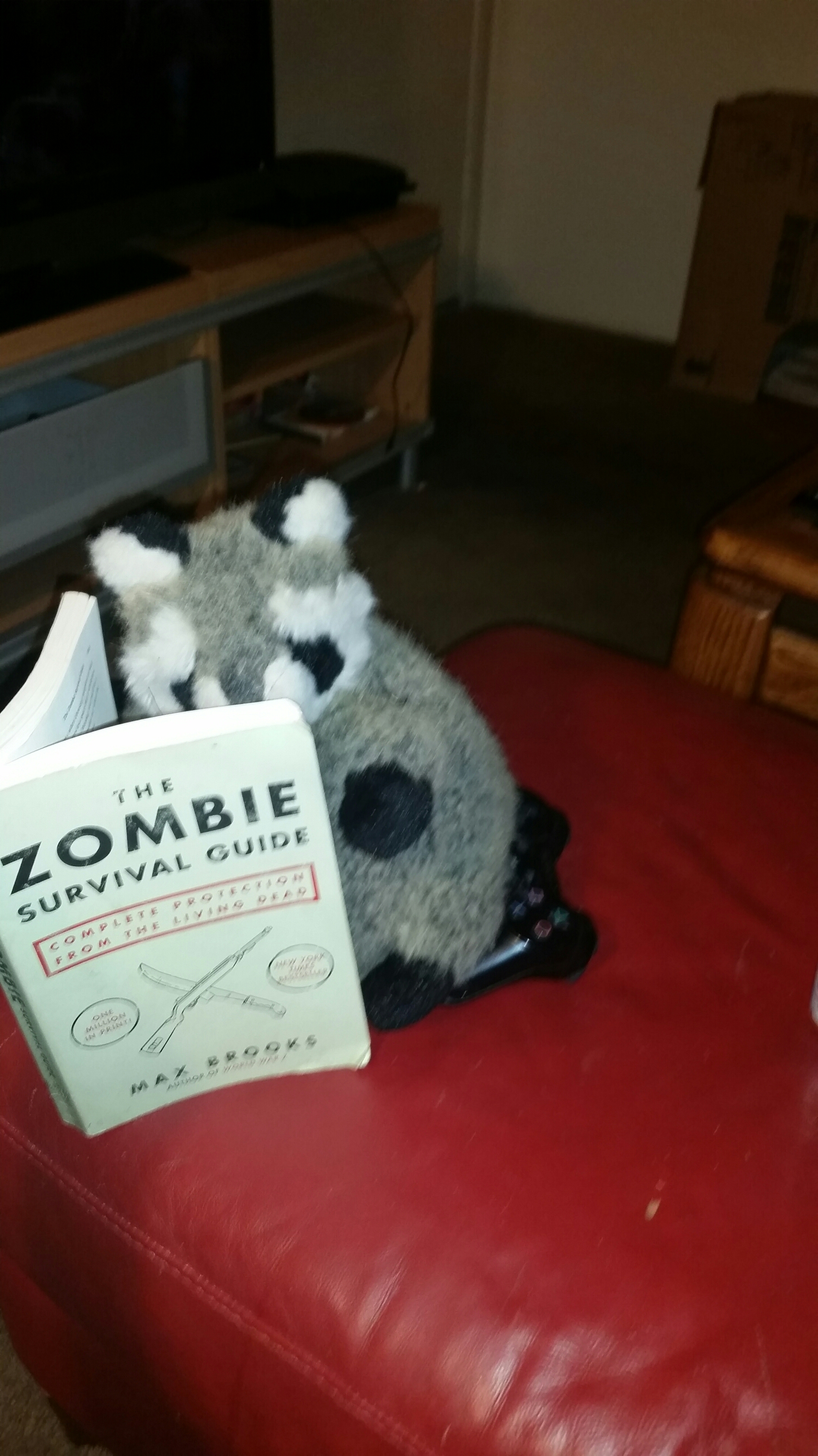 He glanced around at his bleak surroundings with a heavy heart. He wasn’t in his bed, and he knew he probably never would be again. Startled, he jumped, as he often did these days. That’s right—when dead humans start trying to eat little stuffed animals, you can’t afford to let your guard down. KoonKoon had always hoped this day would never come, even though a tiny part of him had secretly found the idea thrilling in theory.
